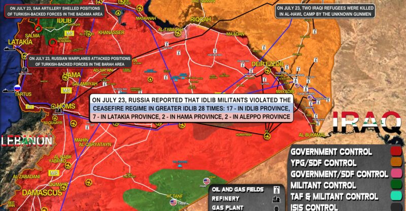 On July 23, Russia reported that Idlib militants violated the ceasefire regime in Greater Idlib 28 times: 17 – in…