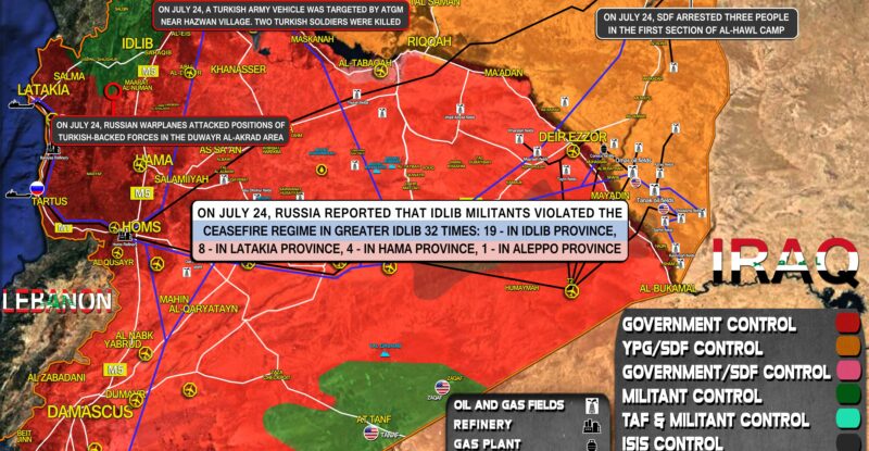 On July 24, Russia reported that Idlib militants violated the ceasefire regime in Greater Idlib 32 times: 19 – in…