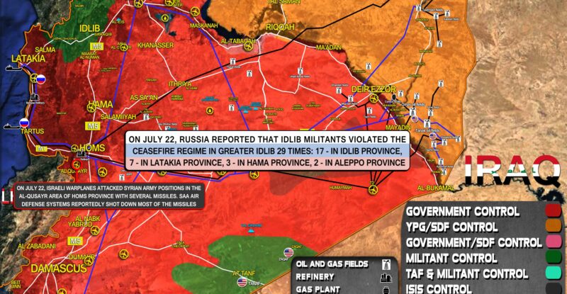 On July 22, Russia reported that Idlib militants violated the ceasefire regime in Greater Idlib 29 times: 17 – in…