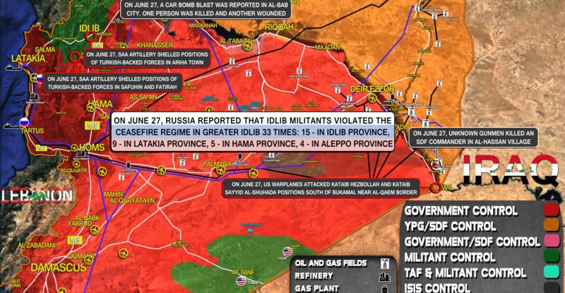 On June 27, Russia reported that Idlib militants violated the ceasefire regime in Greater Idlib 33 times: 15 – in…