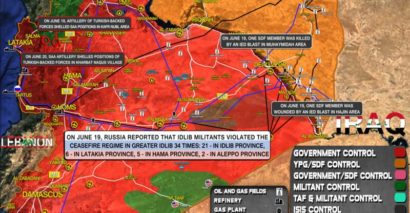 On June 19, Russia reported that Idlib militants violated the ceasefire regime in Greater Idlib 34 times: 21 – in…