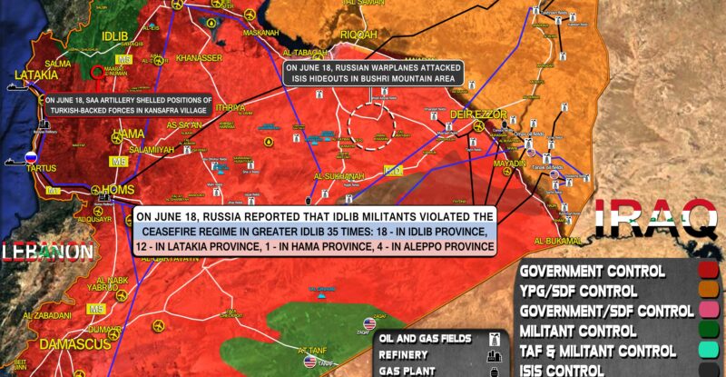 On June 18, Russia reported that Idlib militants violated the ceasefire regime in Greater Idlib 35 times: 18 – in…