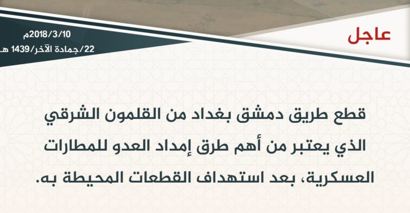 On March 10, Jaysh al-Islam announced that its fighters had managed to cut off the strategic Damascus-Baghdad highway. Militants allegedly…