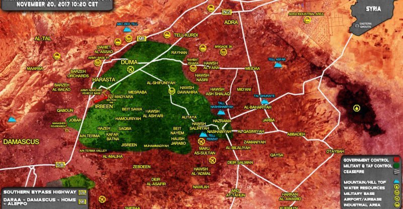 This map provides a general look at the military situation in Syria and Iraq on November 20, 2017: The Syrian…