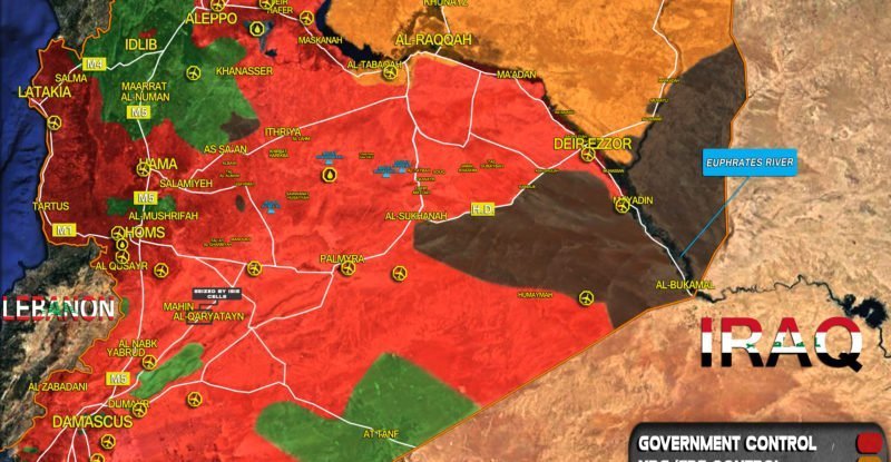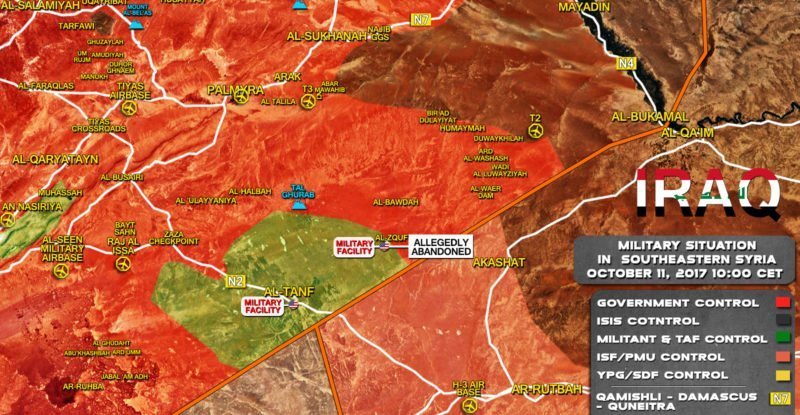 This map provides a general look at the military situation in Syria on October 12, 2017: The Syrian Arab Army…