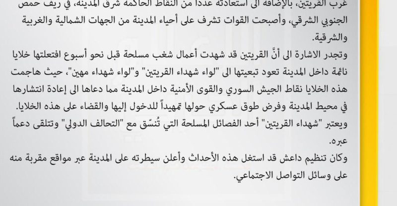 On Thursday, the Syrian Arab Army (SAA) and its allies recaptured al-Hazm area north, and northwest of al-Qaryatayn town in…
