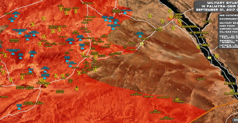 This map provides a general look at the military situation in Syria and Iraq on September 1, 2017. The Iraqi…