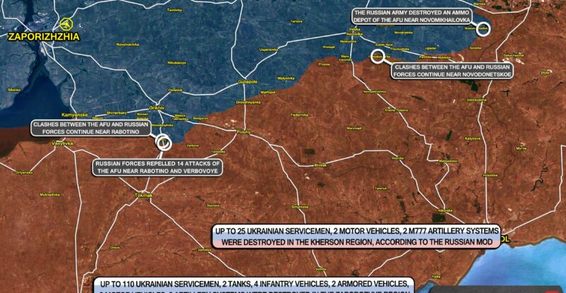 Russian forces repelled 14 attacks of the AFU near Rabotino and Verbovoye; Clashes between the AFU and Russian forces continue…
