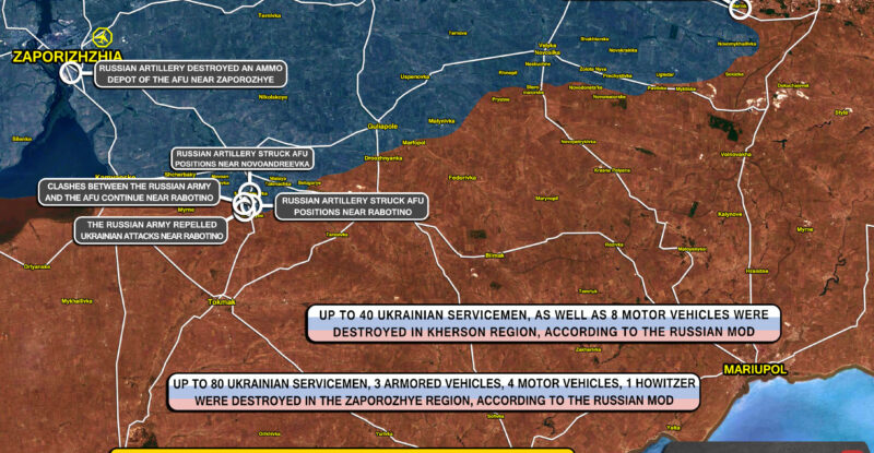 Russian artillery struck AFU positions near Rabotino; Russian artillery struck AFU positions near Novoandreevka; The Russian Army repelled Ukrainian attacks…