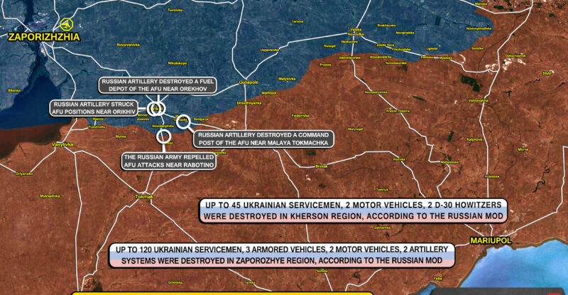 Russian artillery destroyed a fuel depot of the AFU near Orekhov; Russian artillery destroyed a command post of the AFU…