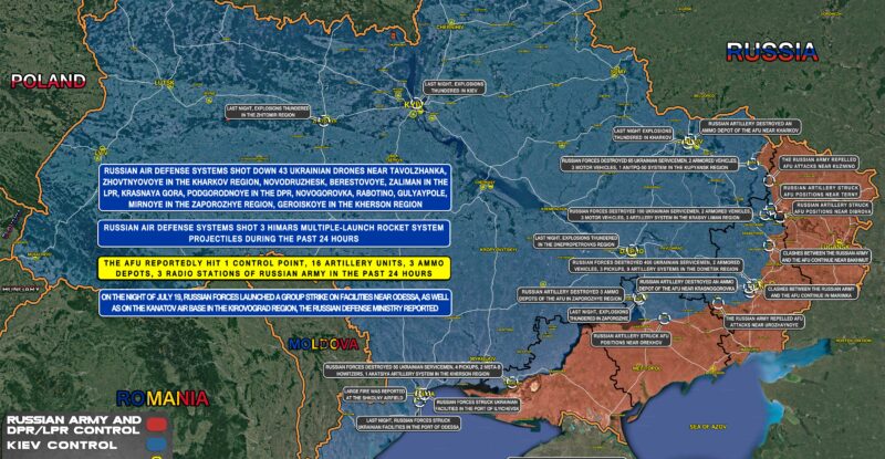 On Juy 19, the Russian Ministry of Defence reported on the night attacks on the Ukrainian military facilities throughout Ukraine….