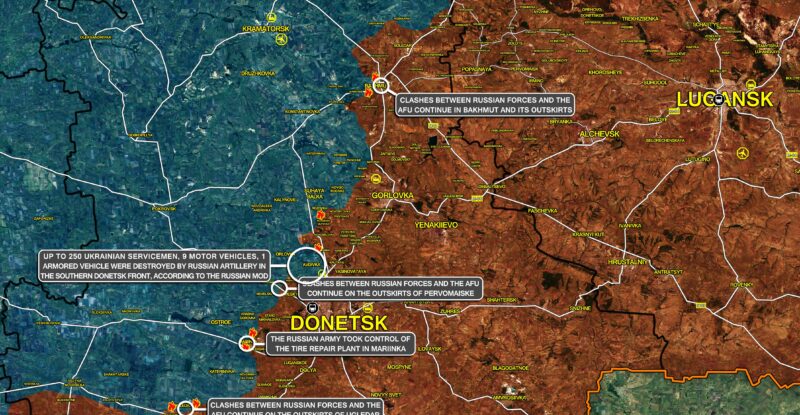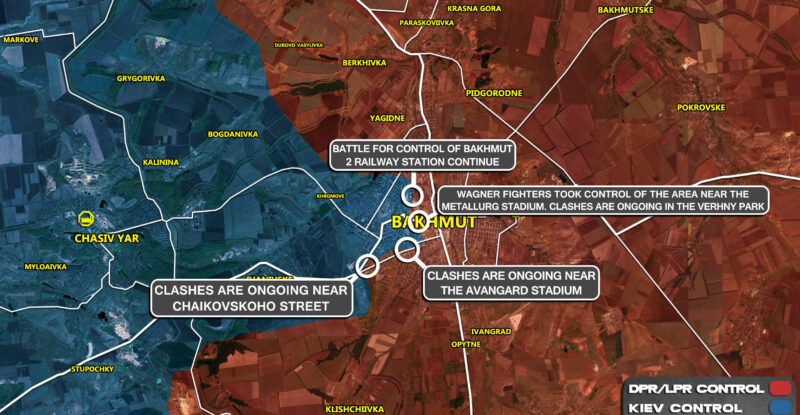 Clashes are ongoing near the Bakhmut railway station; Clashes are ongoing near Chaikovskoho street; Clashes are ongoing near the Avangard…