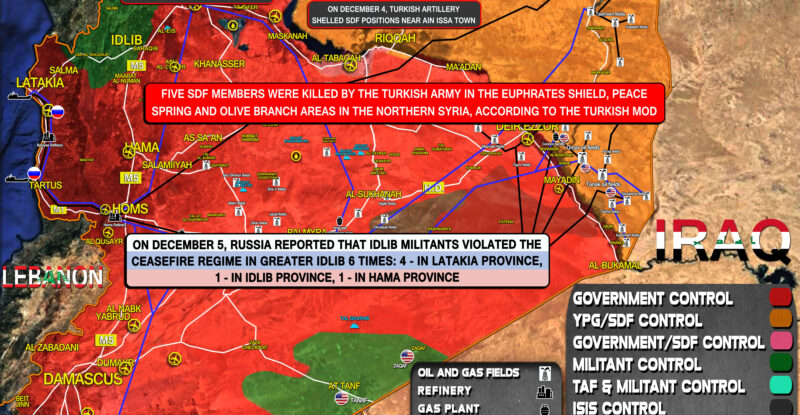 On December 5, Russia reported that Idlib militants violated the ceasefire regime in Greater Idlib 6 times: 4 – in…