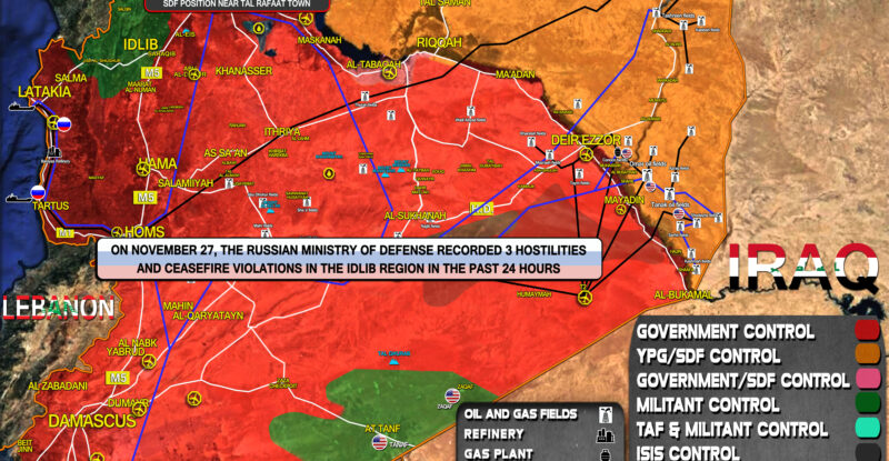 On November 27, the Russian Ministry of Defense recorded 3 hostilities and ceasefire violations in the Idlib region in the…