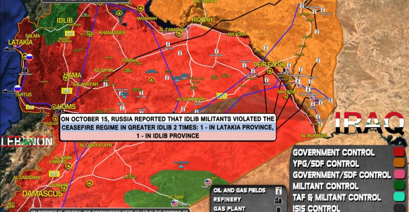 On October 15, Russia reported that Idlib militants violated the ceasefire regime in Greater Idlib 2 times: 1 – in…