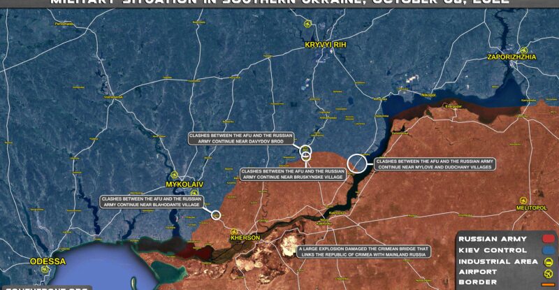 A large explosion damaged the Crimean Bridge that links the Republic of Crimea with mainland Russia; Clashes between the AFU…