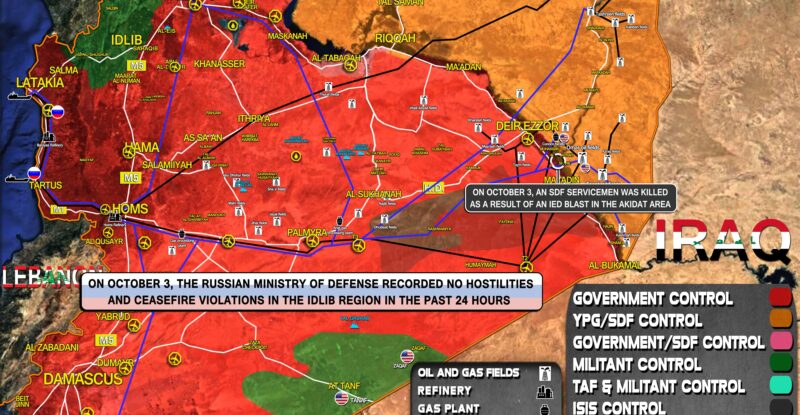 On October 3, the Russian Ministry of Defense recorded no hostilities and ceasefire violations in the Idlib region in the…
