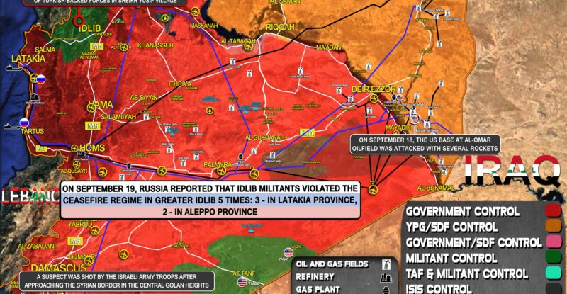 On September 19, Russia reported that Idlib militants violated the ceasefire regime in Greater Idlib 5 times: 3 – in…