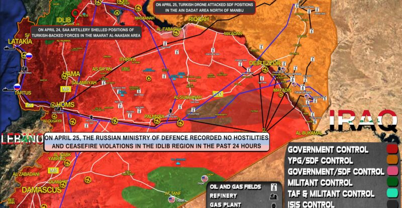 On April 25, the Russian Ministry of Defence recorded no hostilities and ceasefire violations in the Idlib region in the…