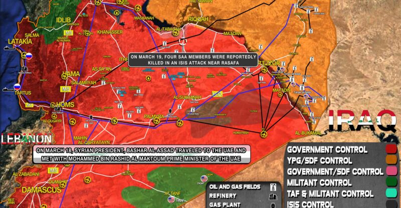 On March 19, four SAA members were reportedly killed in an ISIS attack near Rasafa; On March 18, artillery of…