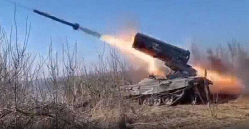 The Russian TOS-1A thermobaric rocket system has been spotted in action for the first time since the beginning of the…