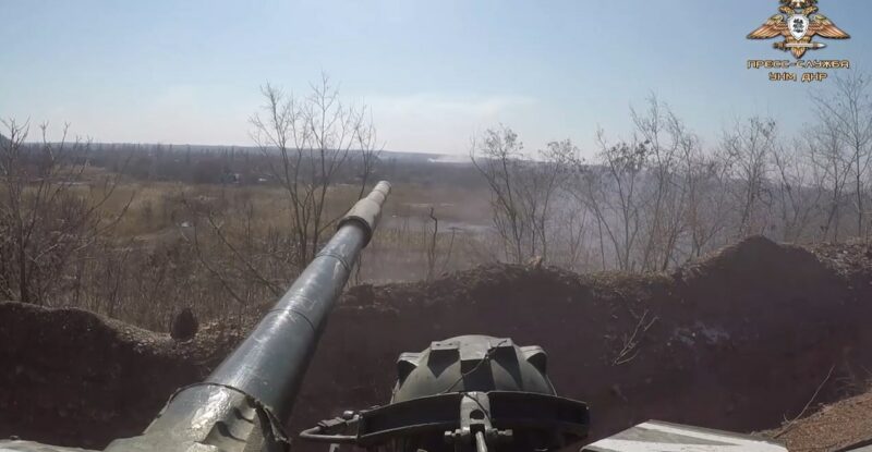 The press service of the DPR military released a POV video of the battle tank work near the town of…