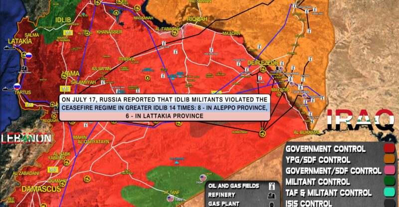 On July 17, Russia reported that Idlib militants violated the ceasefire regime in Greater Idlib 14 times: 8 – in…