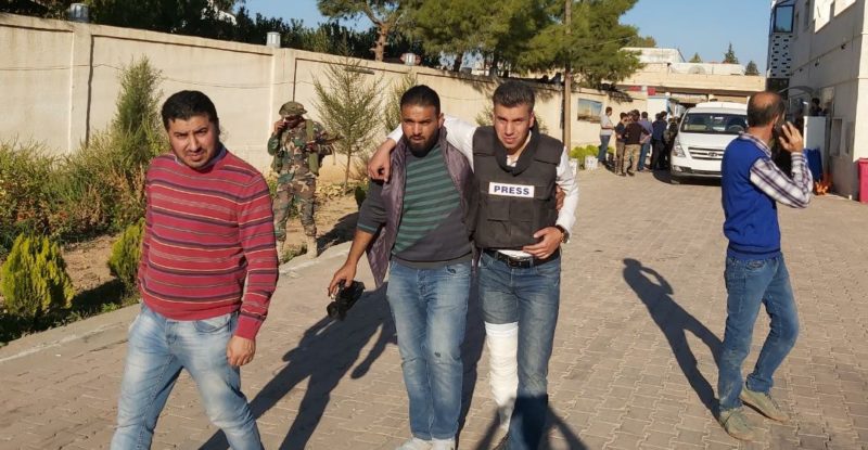 Three journalists working for the Syrian state’s news channel were injured while they were covering a battle between the Syrian…