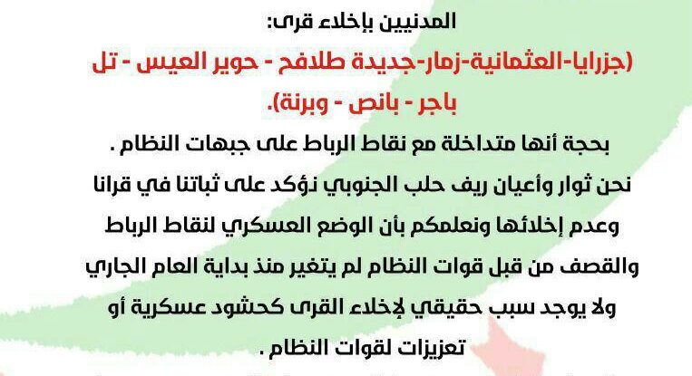 On August 18, local councils of several towns in the southern Idlib countryside released an official statement, in which they…
