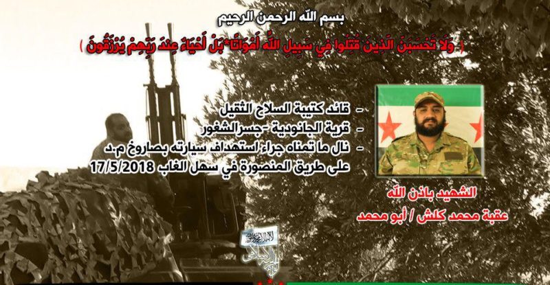 On May 16, the Syrian Arab Army (SAA) assassinated “Oqba Mohamad Kalsh”, a senior commander of the Turkish-backed Islamic Freedom…
