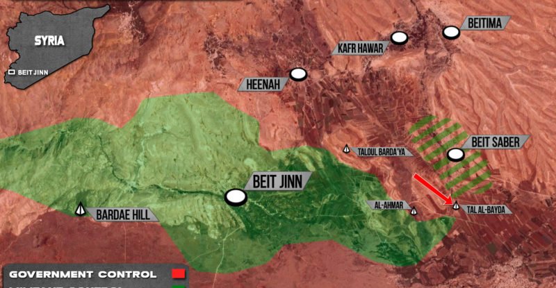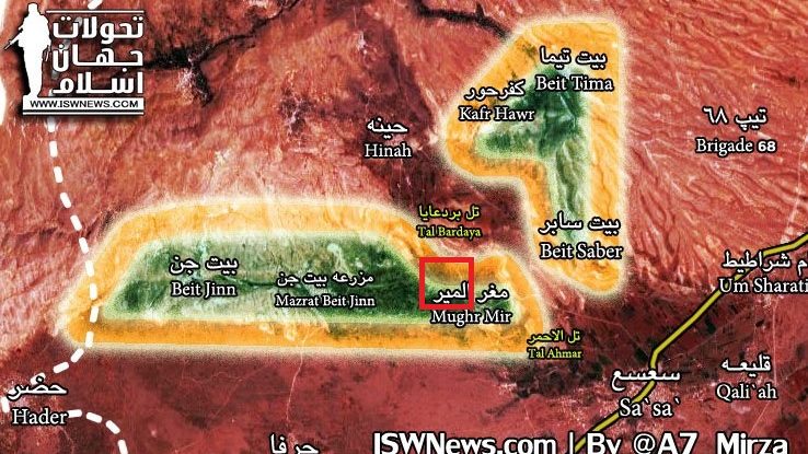 This map provides a general look at the military situation in the Beit Jinn pocket in southern Syria on December…