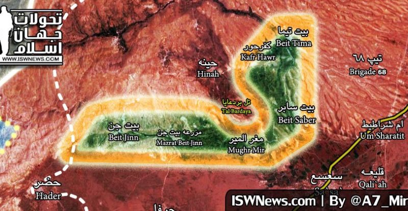 This map provides a general look at the military situation in the Beit Jinn pocket. The Syrian Arab Army (SAA)…