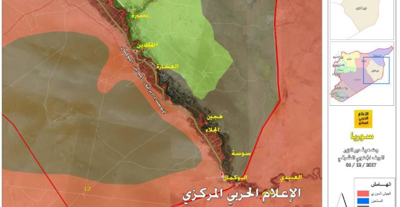 This map provides a general look at the military situation in eastern Syria on December 7, 2017. The Syrian Arab…