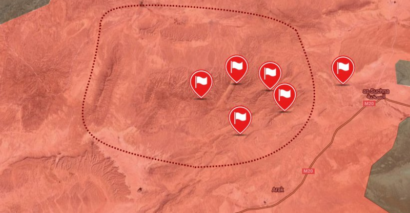 The Russian Aerospace Forces are bombing ISIS targets in the ISIS-held area of Uqayribat north of the Homs-Palmyra highway.