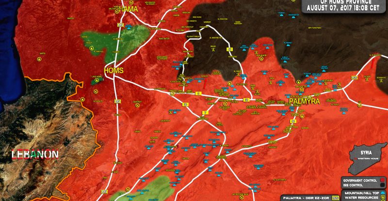 This map provides a general look at the military situation in Syria on August 8, 2017. The Syrian Arab Army…