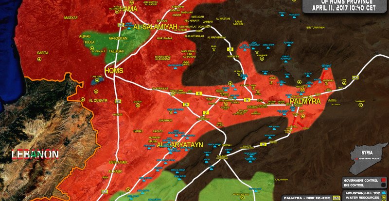 This map provides a look at the military situation in the area of Palmyra, Syria on April 11, 2017.