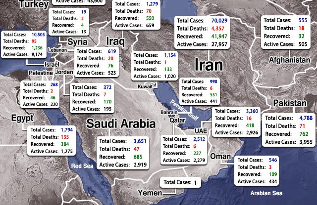 This map provides a general look at the current situation with the COVID-19 outbreak across the Greater Middle East as…