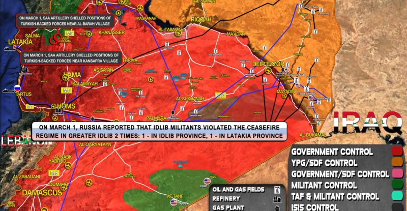 On March 1, Russia reported that Idlib militants violated the ceasefire regime in Greater Idlib 2 times: 1 – in…