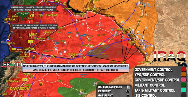 On February 21, the Russian Ministry of Defense recorded 1 case of hostilities and ceasefire violations in the Idlib region…