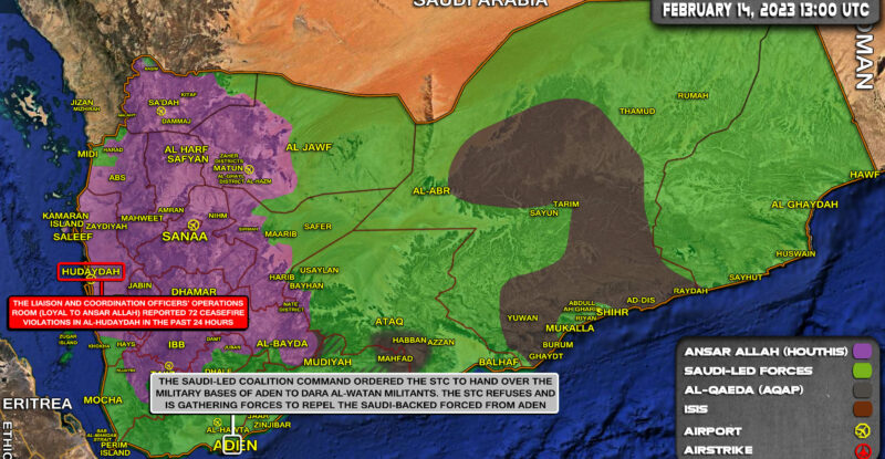The Liaison and Coordination Officers’ Operations Room (loyal to Ansar Allah) reported 72 ceasefire violations in al-Hudaydah in the past…