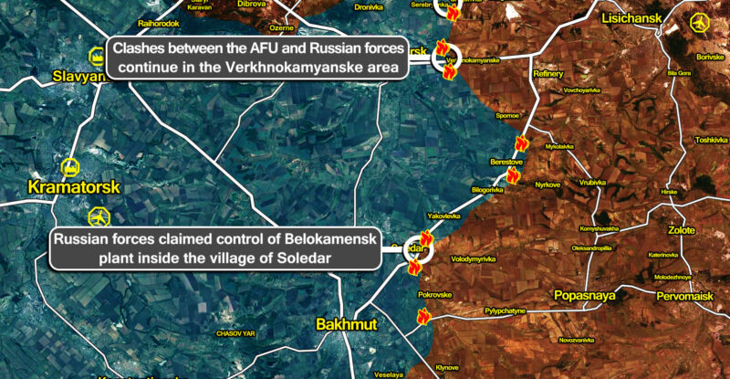 Russian forces claimed control of Belokamensk plant in Soledar Clashes between the AFU and Russian forces continue in the Grygorivka…