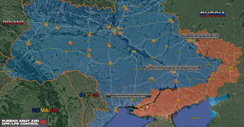 Russia attacked the headquarters and base of Dnepr nationalist battalion in Zvonetskoe with a high-precision sea-launched missile; Russia attacked UAF…