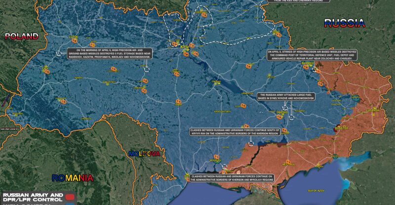 On April 6, high-precision air- and sea-based missile destroyed a fuel storage base near Mykolaiv; On April 6, high-precision air-…
