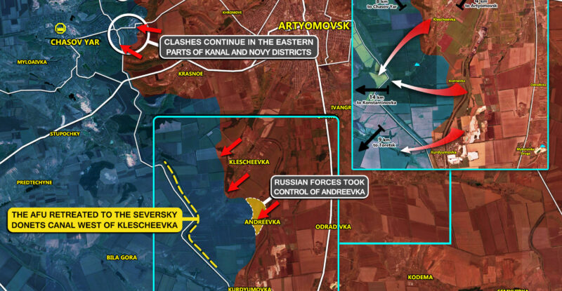 Russian forces took control of Andreevka; The AFU retreated to the Seversky Donets Canal west of Klescheevka; Clashes continue…