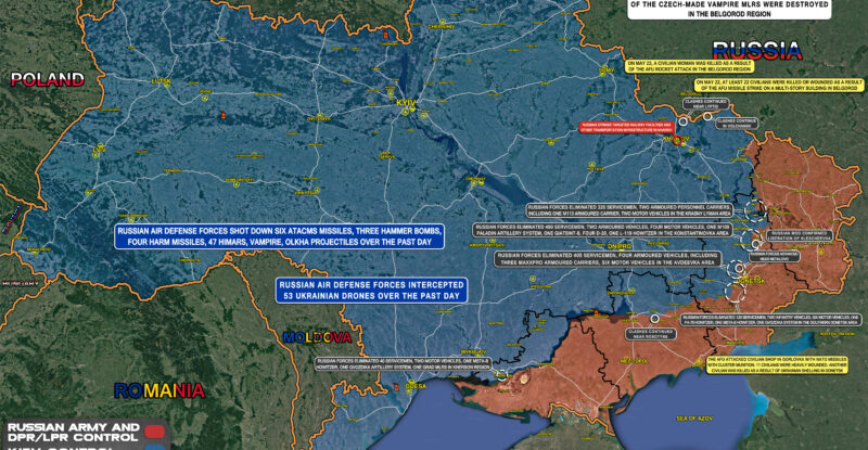 At least 6 Ukrainian UAVs and 20 rockets of the Czech-made Vampire MLRS were destroyed in the Belgorod region; Three…