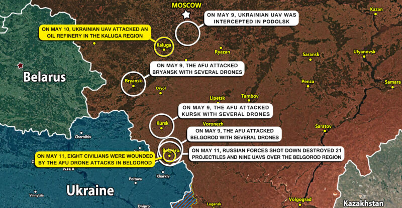 On May 11, Russian forces shot down destroyed 21 projectiles and nine UAVs over the Belgorod region; On May 11,…