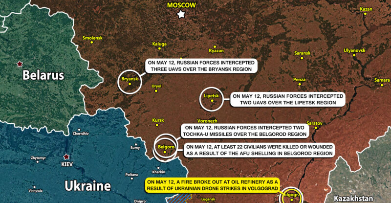 On May 12, a fire broke out at oil refinery as a result of Ukrainian drone strikes in Volgograd; On…