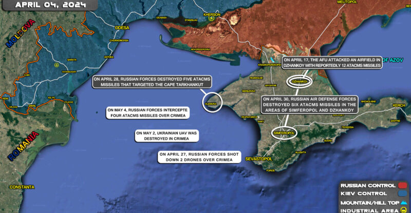 On May 4, Russian forces intercepted four ATACMS missiles over Crimea; On May 2, Ukrainian UAV was destroyed in Crimea;…