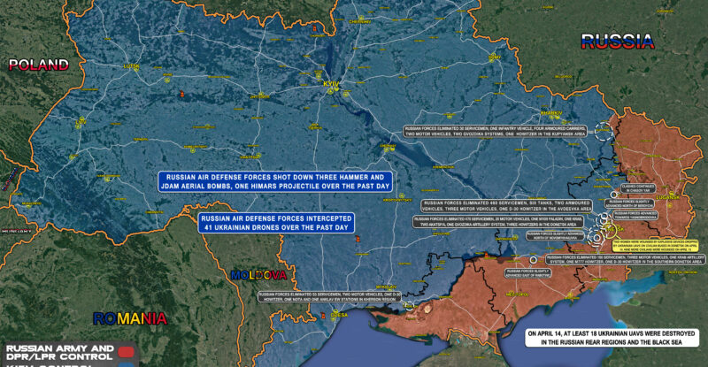 Russian forces reportedly destroyed two Storm Shadow missiles in the area of Berdyansk; On April 14, seven civilians were wounded…