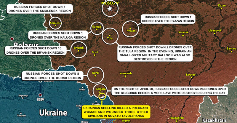 Ukrainian shelling killed a pregnant woman and wounded three other civilians in Novato Tavolzhanka; On the night of April 20,…